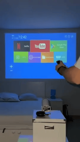 Et tarvitse erillisiä laitteita, kuten Fire TV:tä. ÄlyProjektorisisältää sisäänrakennetun Android-käyttöjärjestelmän, jonka avulla voit ladata ja käyttää suoratoistosovelluksia, kuten Netflix, suoraan Google Play -kaupasta. Lisäksi langaton peilaustoiminto mahdollistaa sisällön näyttämisen helposti suoraan puhelimeltasi tai muilta yhteensopivilta laitteilta.