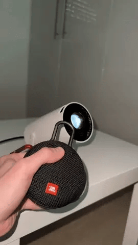 Kyllä, Projektori sisältää oman äänentoistojärjestelmän projektorin etuosassa. Halutessasi voit myös yhdistää siihen Bluetooth-kaiuttimen entistä voimakkaampaa äänikokemusta varten.